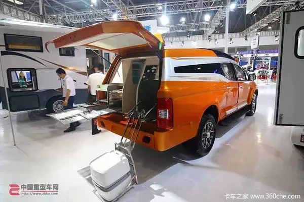 现场展示的达咖皮卡休旅车吸引了不少观众的目光。该车基于达咖双排座皮卡改装,车厢后部进行封闭处理,用于放置露营设备。而车内第二排座椅可向前翻折形成一张大床,完全能够满足双人外出休旅露营的需求。