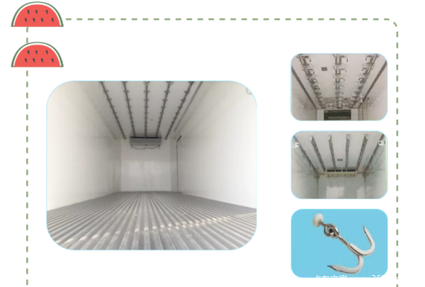 ◆顶部导轨安装预埋件,承重提高20%◆肉挂导轨可按厢体设计双排、三排及不同形式挂肉管◆导轨材料可选铝合金/不锈钢/铁质镀锌件◆导轨上设有链扣或插销,减小货物滑动,提高行驶安全◆可选一体式制冷机组,不占车厢内空间,提高转载量