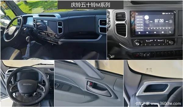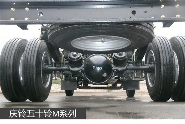 庆铃五十铃M系列配置全新800mm宽高强度钢车架,质量可靠,载货稳。同时,车架表面平整,布置紧凑,载重性更强,还适用于改装多类高附加值专用车。该车前后桥均是五十铃车桥,后桥速比达到了5.875,并针对不同路况进行调校,在满载的情况下拥有更强的爬坡能力,可以满足各种复杂路况的使用需求。