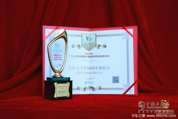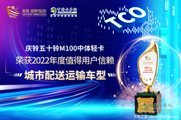 2022年2月22日,第七届发现信赖中国卡车用户调查暨评选活动颁奖盛典举办,庆铃五十铃M100中体轻卡再次闪耀在镁光灯下,摘得“2022年度值得用户信赖城市配送运输车型”奖。
