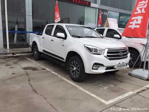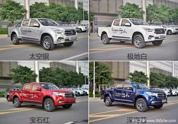 庆铃达咖又名TΛGΛ,是重庆五十铃汽车经过一定的技术积淀后生产的一款搭载了五十铃4KH1发动机的皮卡。车身尺寸为5660×1885×1825mm,轴距为3406mm,货厢尺寸为1800×1540×480mm,这样的数据在同级别车型中相当抢眼,属于比较魁梧的那种。整车造型中庸但不失硬朗,前脸六边形格栅采用横向镀铬条修饰其中,高配车型配备LED日间行车灯,而四种车身颜色可选,让达咖又更加富有年轻气息。