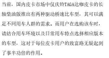 对于该款动力系统,众多用户对于它的油耗指标无疑也非常感兴趣。根据工信部的新车申报信息,庆铃TAGA达咖皮卡的两驱和四驱版的油耗指标相同,不过由于该车具有两种不同的驱动桥速比,这也导致该车油耗性能不同。