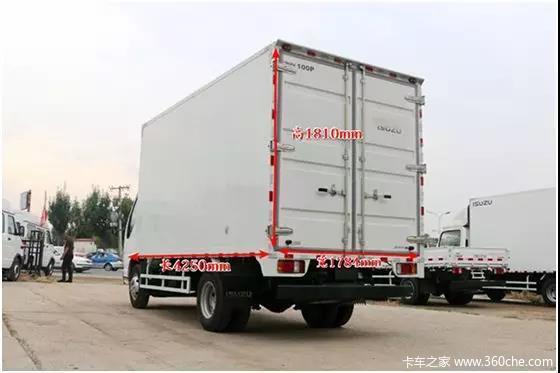 与坚固底盘搭配的是4250x1784x1810mm的货箱,庆铃五十铃100P DPF车身长5995mm、宽1880mm、高2790mm;轴距为3360mm,另外还有加高加宽厢可选,满足日常运输需求。超强承载底盘配合超大货箱给卡友带来更多收益。