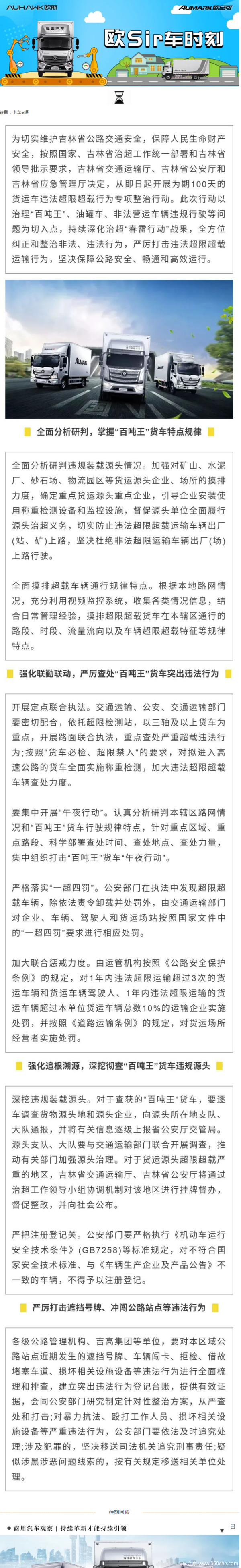 当前位置: 卡车之家 >卡车经销商 > 无锡祥泰汽车销售服务 > 促销新闻 > 欧Sir车时刻 | 吉林省严格打击超限超载 百日行动开启