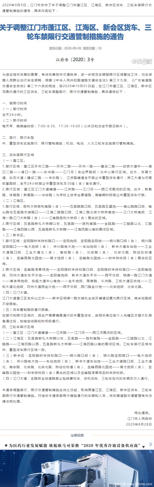 当前位置: 卡车之家 >卡车经销商 > 无锡祥泰汽车销售服务 > 促销新闻 > 欧Sir车时刻 | 十月一日起,广东省江门市部分区域将禁限行货车