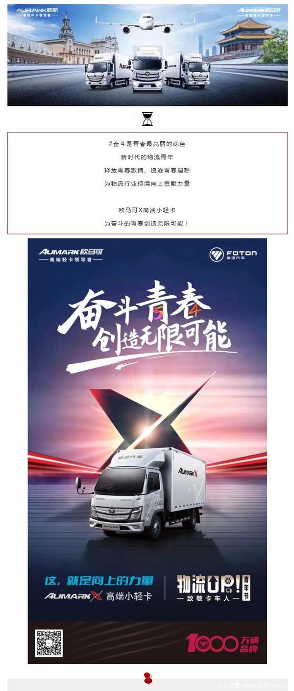 当前位置: 卡车之家 >卡车经销商 > 无锡祥泰汽车销售服务 > 促销新闻 > 欧马可X高端小轻卡 为奋斗的青春创造无限可能!?