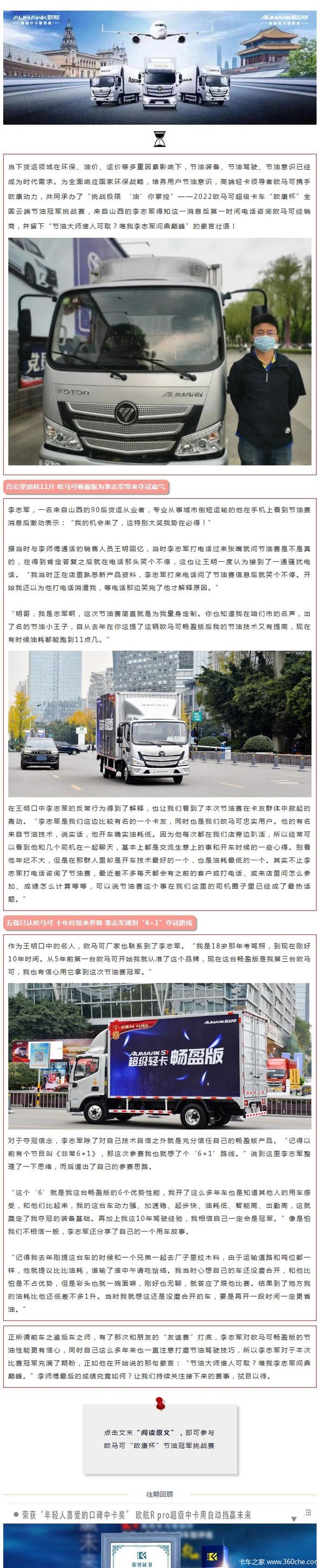 当前位置: 卡车之家 >卡车经销商 > 无锡祥泰汽车销售服务 > 促销新闻 > “论节油从没怕过” 欧马可畅盈版给李师傅带来冠军底气