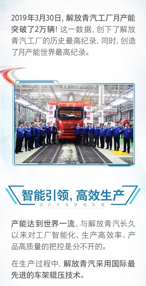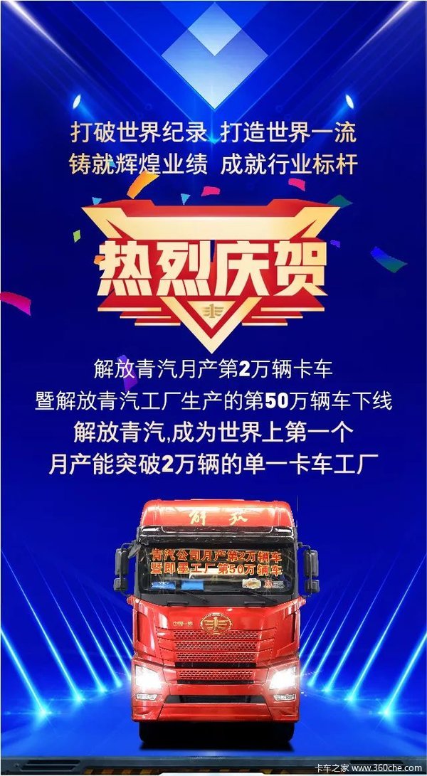 当前位置: 卡车之家 >卡车经销商 > 泉州市迅鹏汽车 > 促销新闻 > 中国第一,世界一流丨解放青汽月产第20000辆卡车,荣耀下线