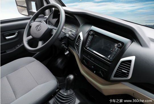 对于跨越王X5的驾驶室,最直观的感受就是:空间大、配置丰富。相比传统车型驾驶室,跨越王X5驾驶室外部增加3公分,内部增加6公分。宽绰的驾驶室内,冷暖空调、中控锁、空调、倒车影像、多媒体轿车化的设备,一应俱全。