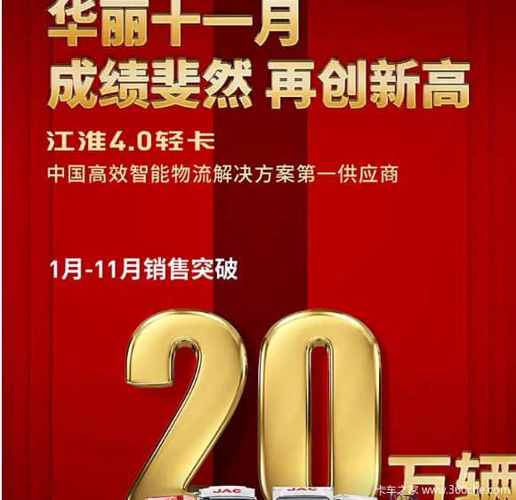 当前位置: 卡车之家 >卡车经销商 > 蚌埠市瑞星汽车销售 > 促销新闻 > 【有大事】江淮轻卡1-11月销量突破20万辆!