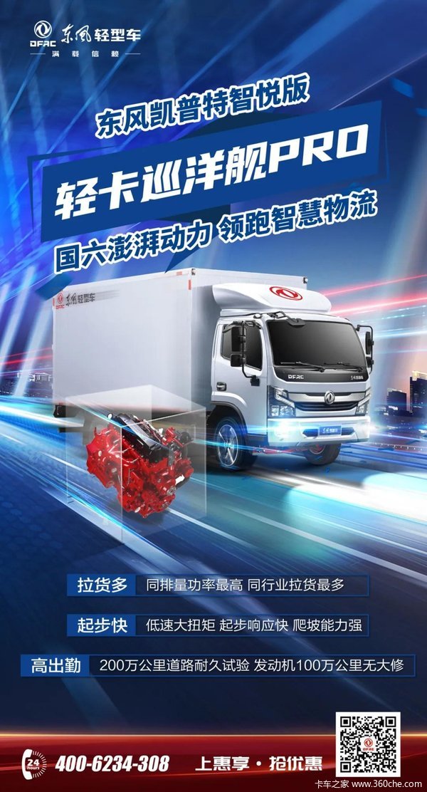 年装机量超过20万台的康明斯D4.0发动机,遵循康明斯全球质量体系和制造标准,通过200万公里严苛道路耐久试验,发动机保持着100万公里无大修的记录。让东风凯普特智悦版轻卡巡洋舰PRO的使用寿命,在高品质底盘和高品质发动机的保障下,进一步延长,带来卓越的出勤表现。