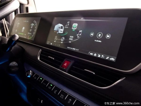 东风凯普特e星的中控台创新性地选用了双12.3英寸联屏,这是豪华品牌轿车才有的配置,首次应用在新能源轻卡车型。全液晶仪表,科技感爆棚,更多的信息显示、主题、动画效果,让驾驶更加轻松愉悦。