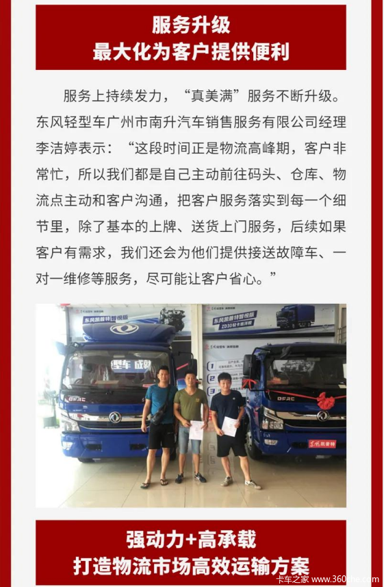 当前位置: 卡车之家 >卡车经销商 > 石家庄玛泰汽车销售(凯普特) > 促销新闻 > 广州、义乌多地成交,东风轻型车助力物流大客户跑出加速度!