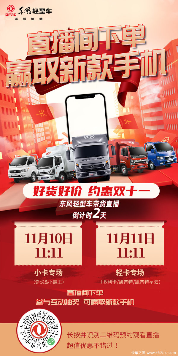当前位置: 卡车之家 >卡车经销商 > 石家庄玛泰汽车销售(凯普特) > 促销新闻 > 好货好价 约惠双十一 东风轻型车带货直播倒计时!