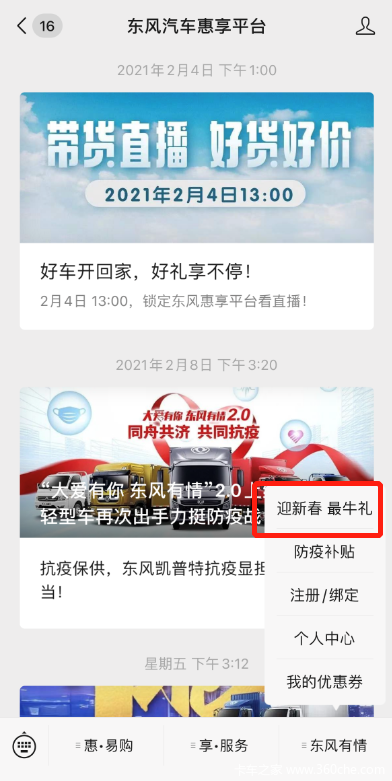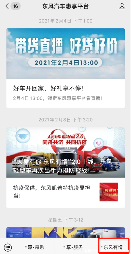 第一步:关注“东风汽车惠享平台”