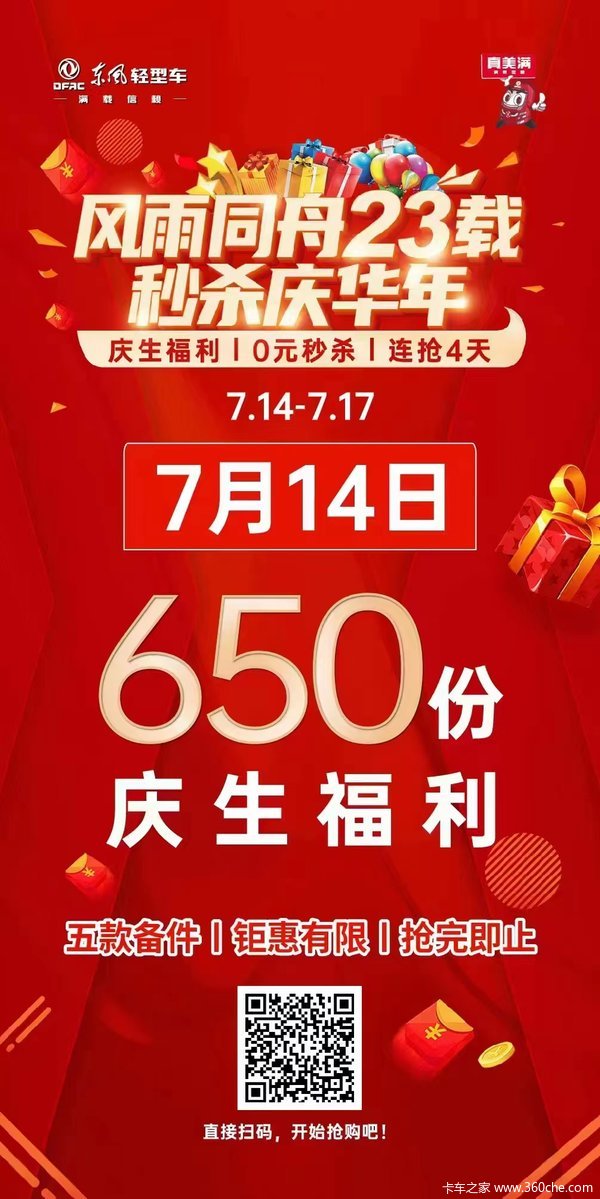 当前位置: 卡车之家 >卡车经销商 > 石家庄玛泰汽车销售(凯普特) > 促销新闻 > 风雨同舟23载 秒杀庆华年-7.14-7.17零元秒杀