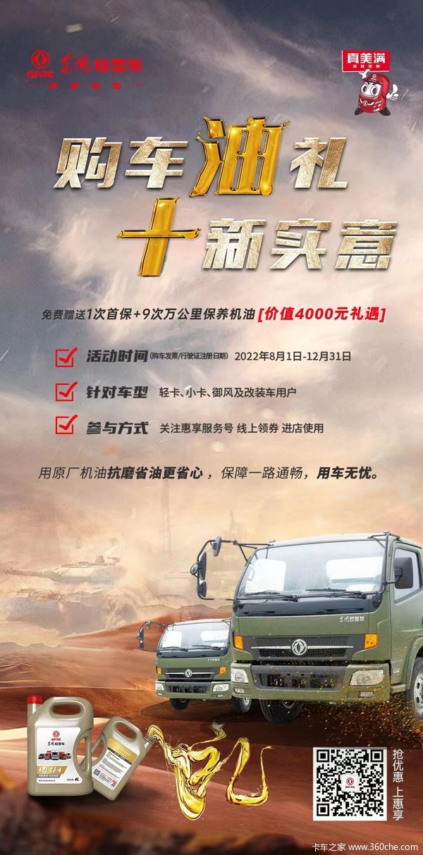 即日起购买东风凯普特全系列即可享受1次常规保养+9次机油保养,全部免费送您,靠谱又实惠,