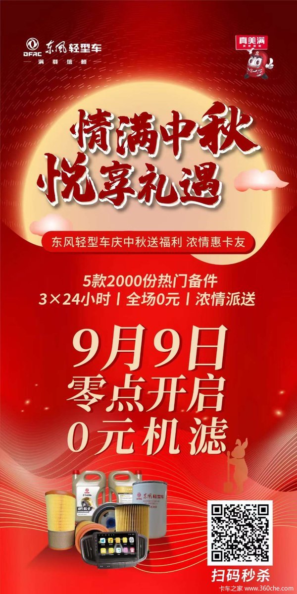 当前位置: 卡车之家 >卡车经销商 > 石家庄玛泰汽车销售(凯普特) > 促销新闻 > 来自东风的中秋福利,9月9日0零时抵达