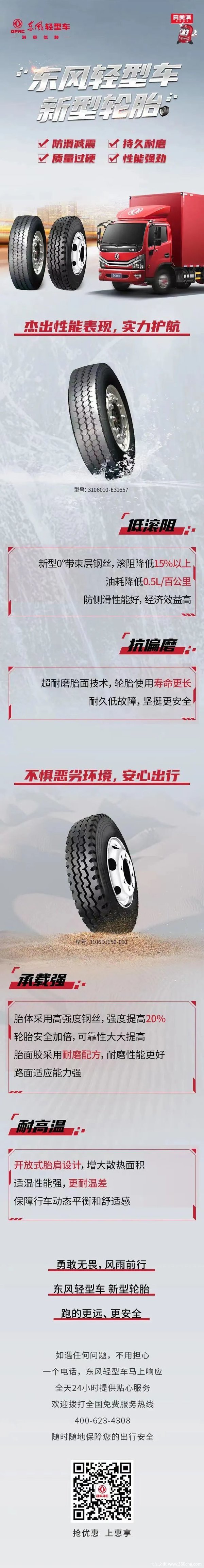 当前位置: 卡车之家 >卡车经销商 > 石家庄玛泰汽车销售(凯普特) > 促销新闻 > 东风轻型车新型高性能轮胎,抗载耐磨!