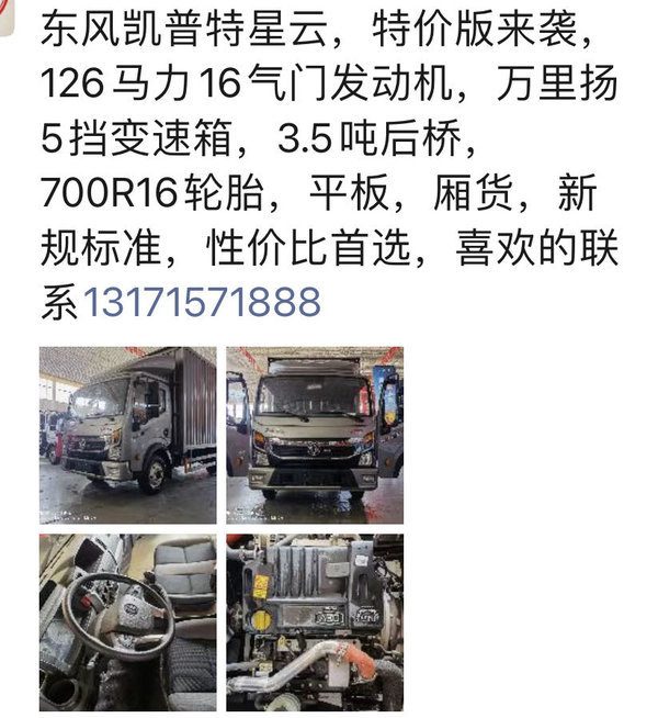 当前位置: 卡车之家 >卡车经销商 > 石家庄玛泰汽车销售(凯普特) > 促销新闻 > 东风凯普特星云,特价版来袭 新规标准 性价比首选