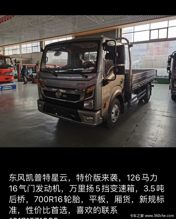 当前位置: 卡车之家 >卡车经销商 > 石家庄玛泰汽车销售(凯普特) > 促销新闻 > 东风凯普特星云,特价版来袭 性价比首选,喜欢的联系