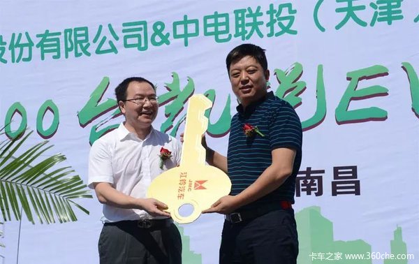 最后,在礼炮齐鸣声中,股份公司总裁助理刘让坡代表江铃股份将车辆钥匙交付给中电联投。