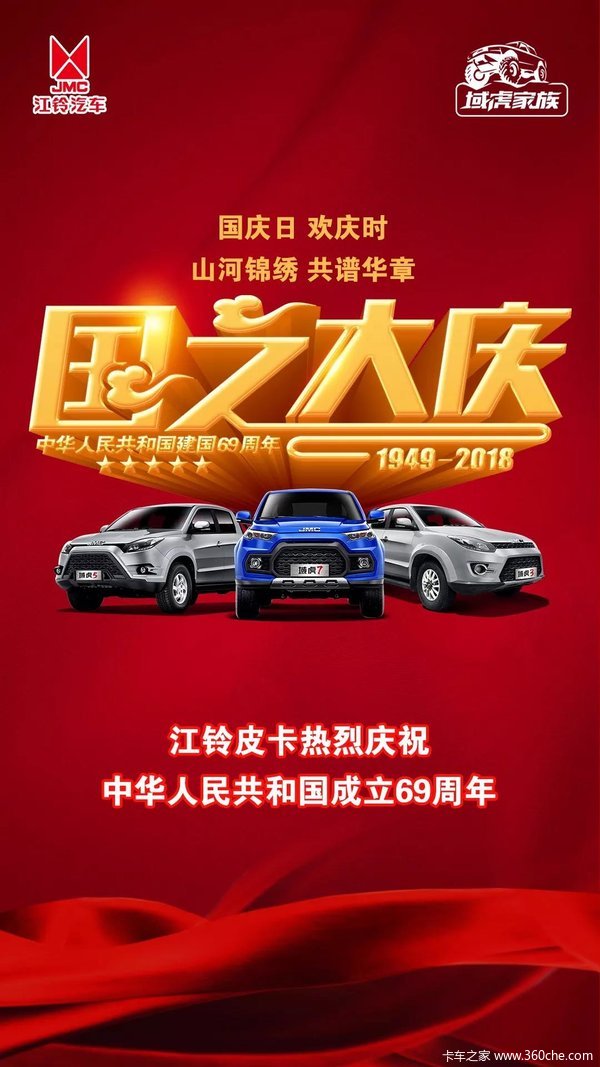 当前位置: 卡车之家 >卡车经销商 > 甘肃顺铃汽车销售服务 > 促销新闻 > 江铃皮卡祝皮卡车主国庆节快乐!
