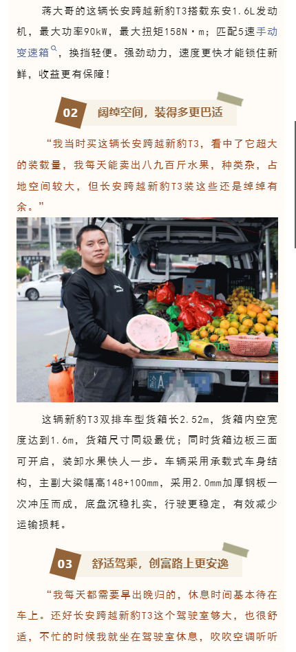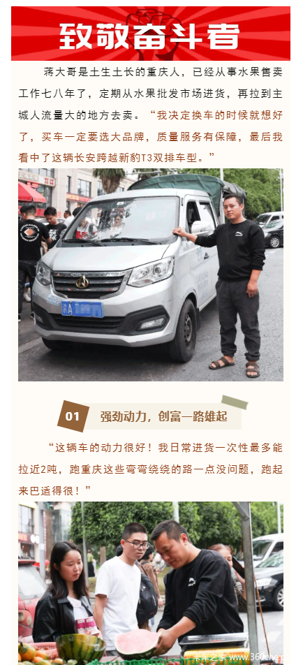 当前位置: 卡车之家 >卡车经销商 > 遂宁市凯荣汽车销售 > 促销新闻 > 致敬奋斗者|致富运输优选大品牌,长安跨越新豹T3成蒋大哥的最爱!