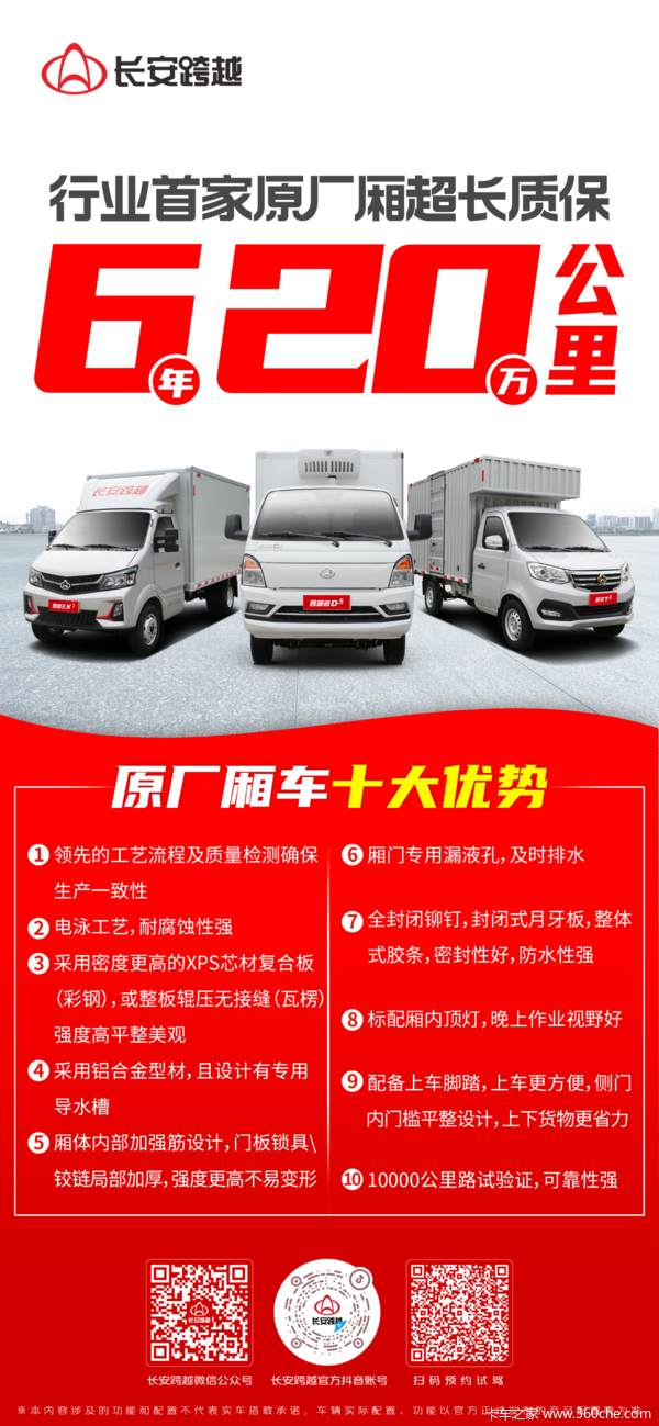 当前位置: 卡车之家 >卡车经销商 > 遂宁市凯荣汽车销售 > 促销新闻 > 长安跨越原厂厢车|行业首家原厂厢超长质保,6年20万公里!