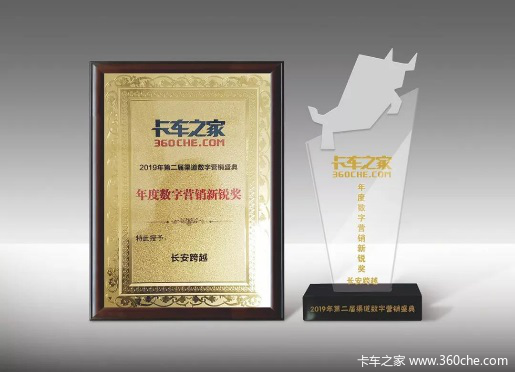2019年1月21日,以“共建数字生态,重塑营销体验”为主题的2019年卡车之家第二届渠道数字营销盛典在江城武汉召开。在本次盛典上,长安跨越荣获卡车之家“2018年度数字营销新锐奖”。