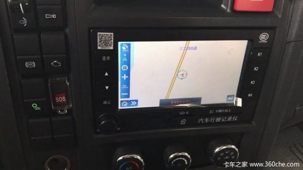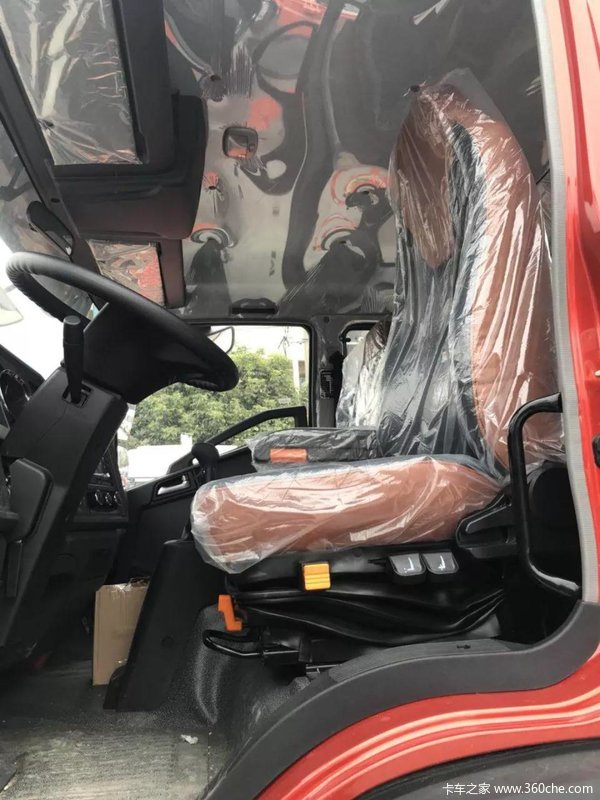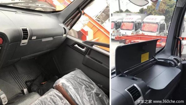 驾驶室内部造型干净整洁。仪表盘采用了左右对称式炮筒设计,相比某些品牌中卡造型简陋的仪表要高端不少。中间的LED液晶显示器包含了水温表、气压表、里程表和车辆运营情况表等多种电子表格,设计往高端路线发展。方向盘采用三幅式设计,左右两侧安装了多功能按钮。