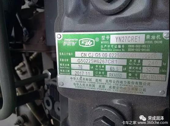 凡在荣成润泽重汽4S店购买 云内490车型,