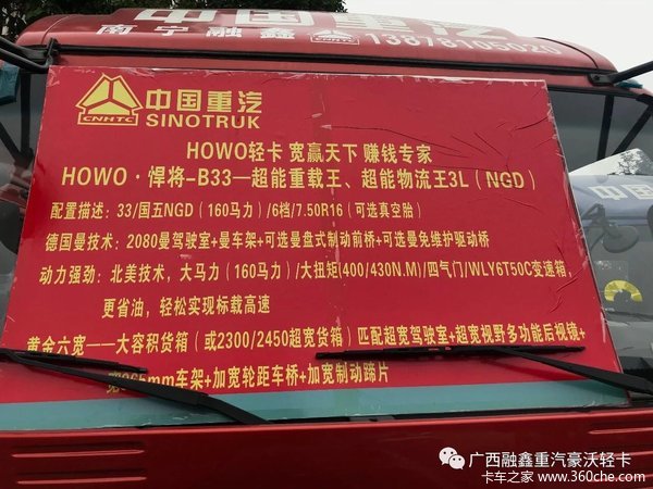 经营品牌:重汽HOWO轻卡
