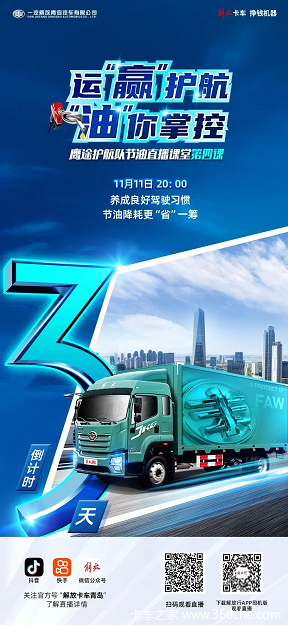 当前位置: 卡车之家 >卡车经销商 > 西安宝信达汽车 > 促销新闻 > 鹰途护航队节油直播课堂第四课,倒计时3天!