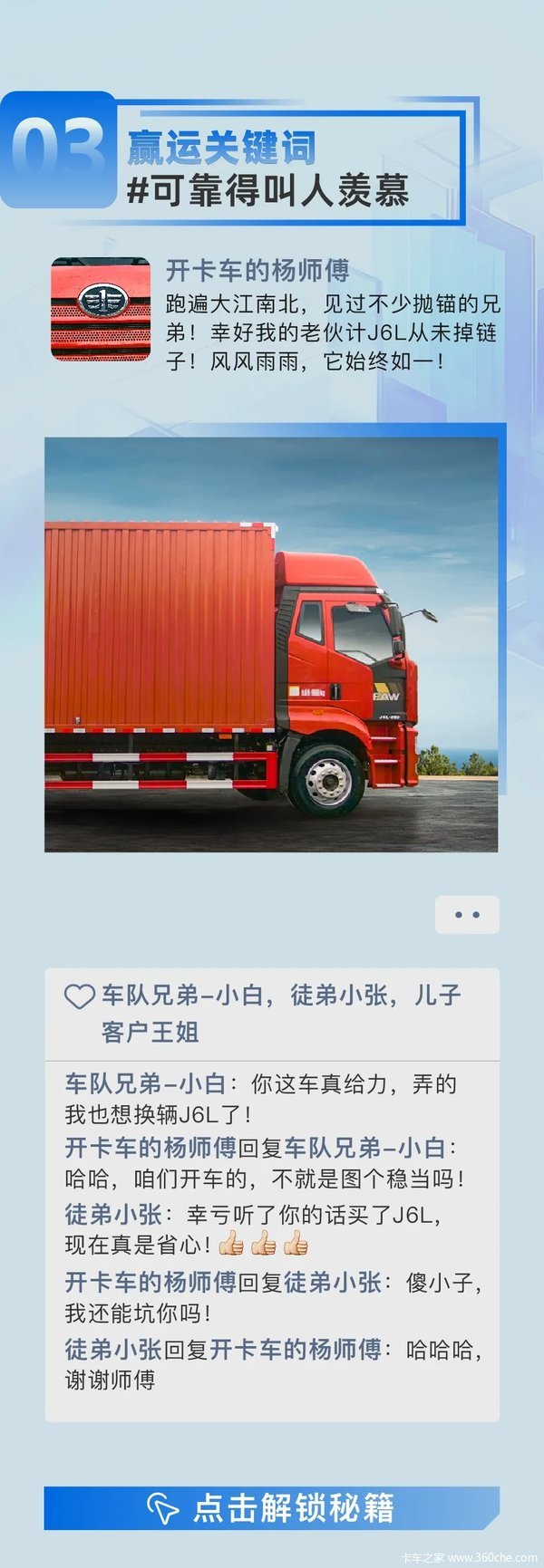 当前位置: 卡车之家 >卡车经销商 > 西安宝信达汽车 > 促销新闻 > 名车博览 | 卡圈高手朋友圈的“赢运密码”,你Get了吗?