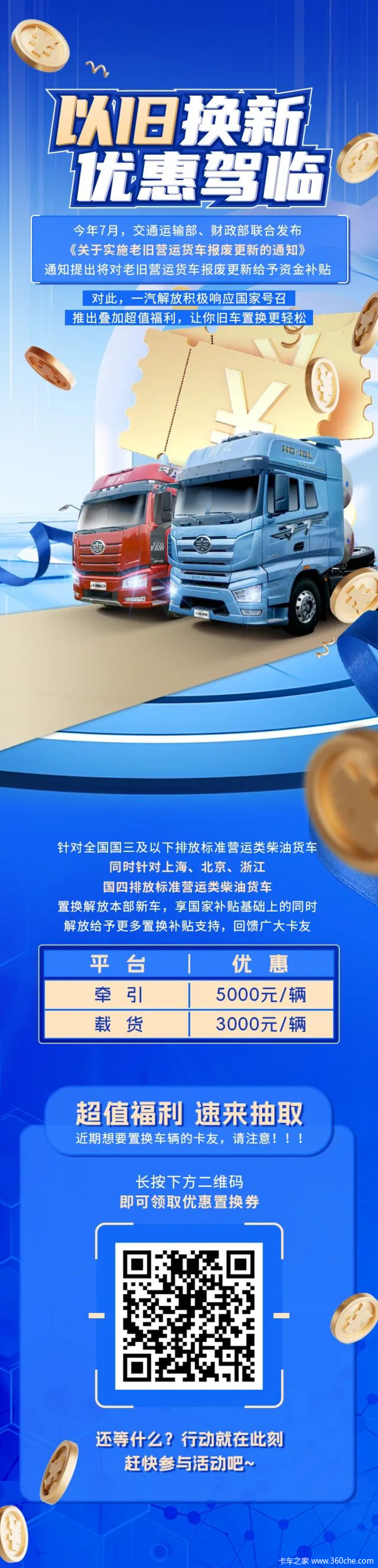 当前位置: 卡车之家 >卡车经销商 > 西安宝信达汽车 > 促销新闻 > 老旧车置换趁现在,一汽解放优惠置换券等你来领!