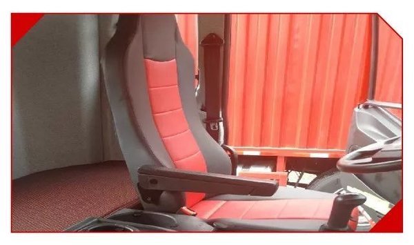真皮座椅,座椅带扶手、腰托,4×2车型标配通风功能,6×2车型标配通风加热功能。