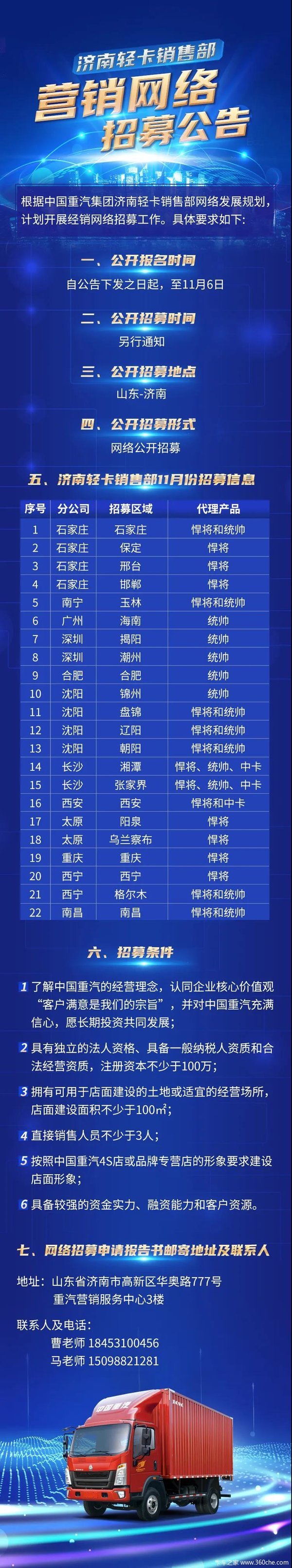 当前位置: 卡车之家 >卡车经销商 > 德阳市庄胜汽车销售 > 促销新闻 > 招募令丨HOWO轻卡营销网络招募公告
