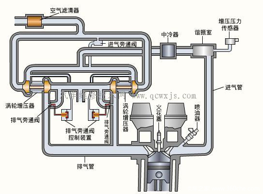 利用废气推动涡轮室内的涡轮送气