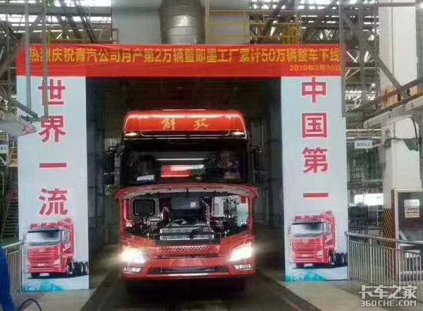 2019年3月30日,青汽解放即墨工厂第50万辆车正式下线,并且该车也是青汽公司月产第2万辆车,这台解放JH6标志着即墨工厂月产2万台的超高产能,同时也说明了市场对于解放青汽的产品认可。