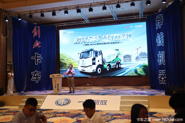 与会嘉宾兴趣高昂,唐宏经理继续介绍到,J6M 搅拌车为了适应市场需求一直在进行改进,如今已成为卡友可靠的挣钱机器,具备低自重、强动力、高可靠、更舒适等性能优势。