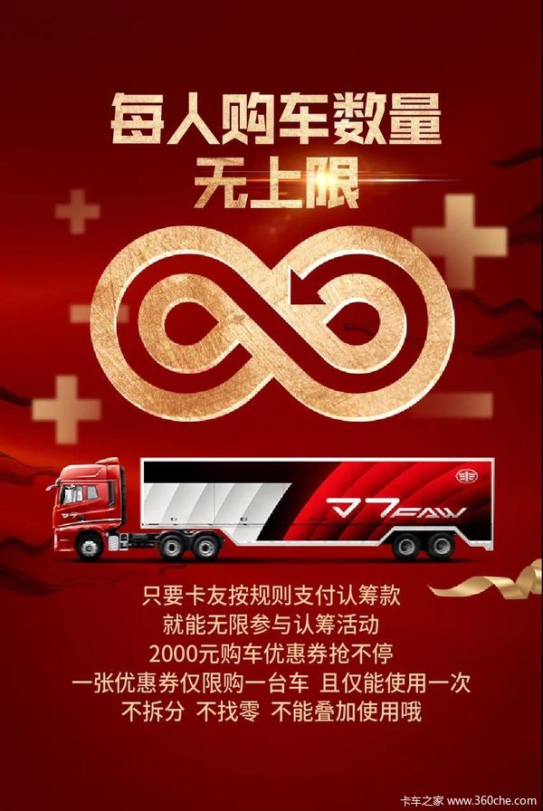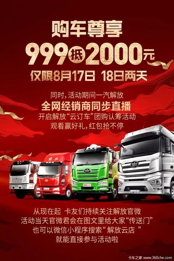 当前位置: 卡车之家 >卡车经销商 > 安徽通翔阳光实业集团 > 促销新闻 > 999元抵2000元,解放全系车型认筹即将开启!