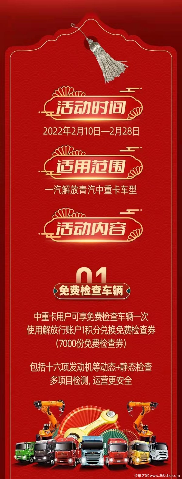 当前位置: 卡车之家 >卡车经销商 > 安徽通翔阳光实业集团 > 促销新闻 > 春节开工礼正式开启,为爱车免费体检!还有惊喜福利!