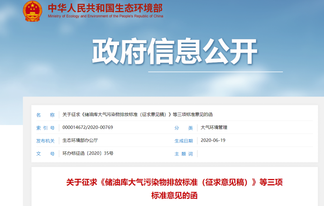 6月19日,生态环境部发布了关于征求《油品运输大气污染物排放标准(征求意见稿)》等三项标准意见的函,并公开征求社会各界的意见。