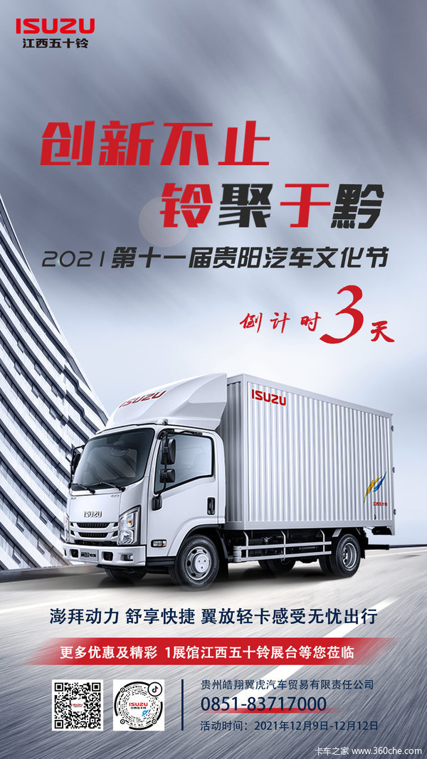 当前位置: 卡车之家 >卡车经销商 > 贵州慧致商用汽车贸易服务 > 促销新闻 > 创新不止铃聚于黔 12月9日至12日贵阳国际车展