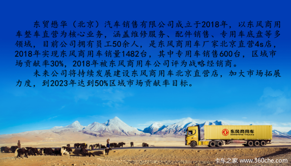 【卡车之家】东风(北京)汽车贸易有限公司 经营品牌:东风商用车 公司地址:北京市北京通州区兴贸二街15号公司电话:4006991851