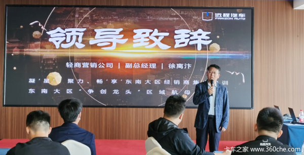 轻商营销公司副总经理徐离汴担任特训营主持并对参训学员表示欢迎和问候。同时对经销商伙伴一直以来对远程汽车的信赖、支持、贡献致以最诚挚的感谢!