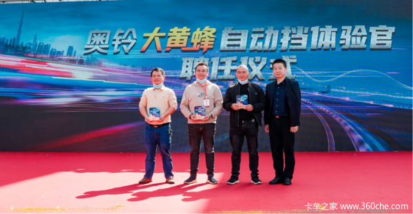 奥铃大黄蜂自动挡聚焦市场以用户诉求为中心研发设计,硬核质量收获了大量忠实粉丝,现场,奥铃南方营销公司总经理王波为首批大黄蜂自动挡产品体验官进行授牌。未来,奥铃将一如既往地全力做好产品创造服务保障工作。
