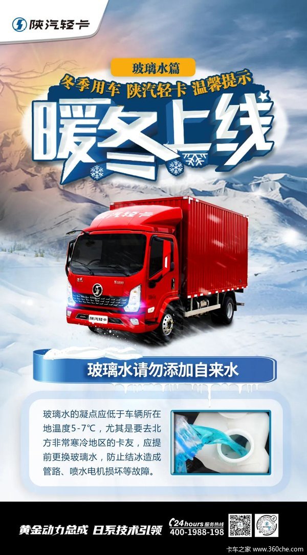 当前位置: 卡车之家 >卡车经销商 > 南阳市景晨汽车销售服务 > 促销新闻 > 暖冬上线 | 陕汽轻卡冬季爱车玻璃水篇