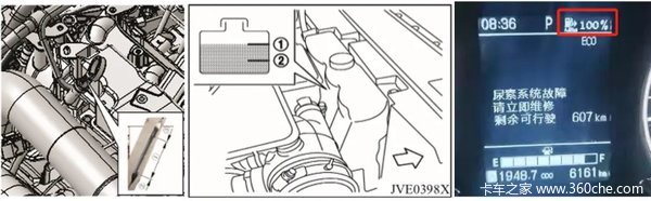 注意尿素液位,液位一旦低于35%仪表会报警,加注尿素时请保持停机熄火断电状态加注,避免尿素液位显示不准。